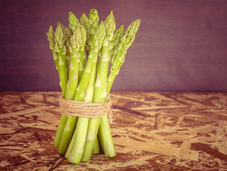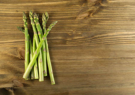 Fresh green spring asparagus on a wooden background. Asparagus season