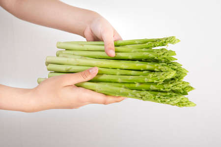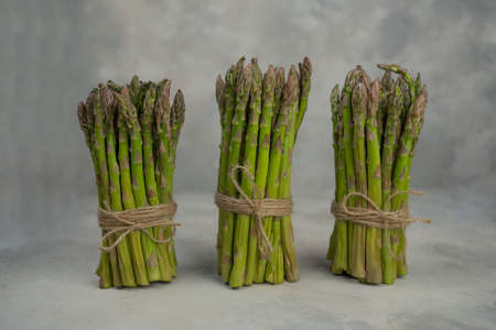 Bunch of green asparagus isolated on grey. Fresh vegetables.
