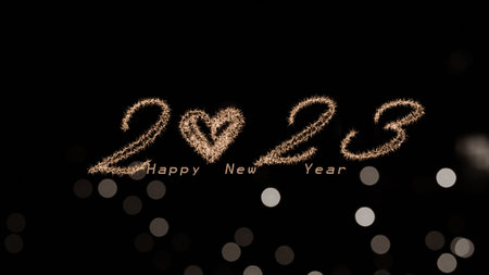 2023 with a black background. Happy New Year 2023