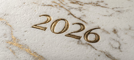 Elegant Marble Surface with Gold Engraved 2026 in Minimalist Design