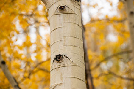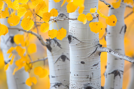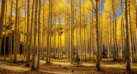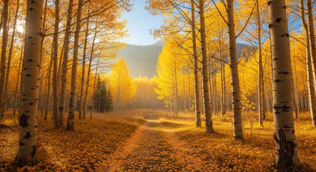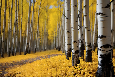 Autumn turns aspen trees a golden yellow that contrasts their white trunks.