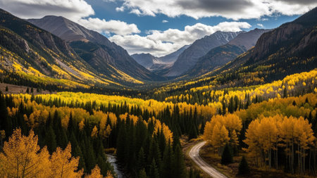 Colorful yellow autumn in Colorado, United States. Fall season.