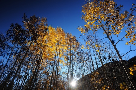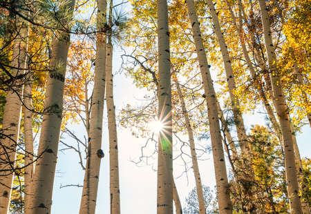 Beautiful quaking aspens backlit with sun star