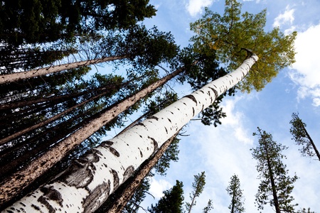 Birch and blue sky at rocky mountain canada