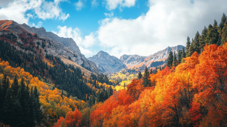 Colorful foliage covering the majestic mountain slopes in autumn