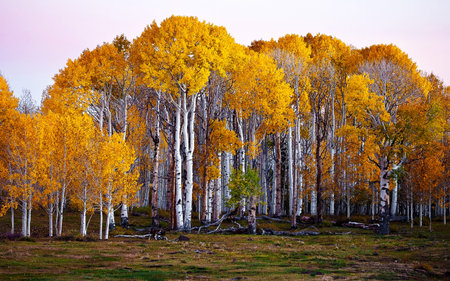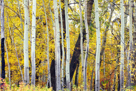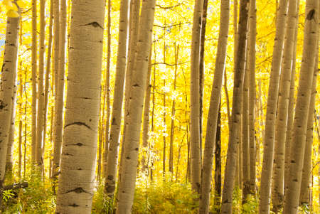 Aspen grove with yellow leaves in autumn, Colorado, USA.