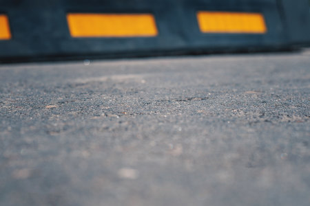 A detailed view of a paved roadway featuring vibrant yellow reflectors embedded in the asphalt, enhancing visibility and safety during nighttime driving.