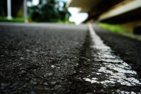 Close up of asphalt road with line on it