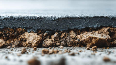 A close-up image showcasing the texture of a dark surface meeting rough ground. The visual highlights the interplay of materials, ideal for construction or nature themes.