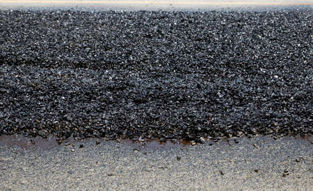 Part of fresh asphalt close-up. Construction and repair of roads.