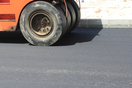 Background of asphalt roller that stack and press hot asphalt. Road repair machine.