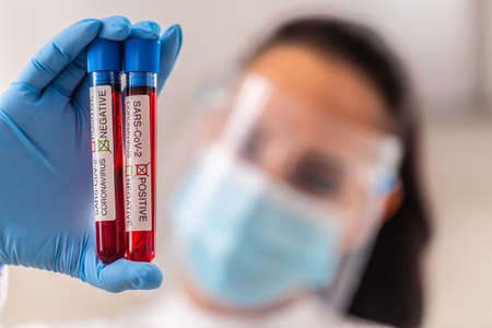 COVID-19 blood test in test-tube, sample of blood testing for diagnosis new Corona virus infection