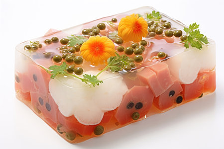 Fish in aspic with. Fish in jelly. Fish with gelatin. Generative AI