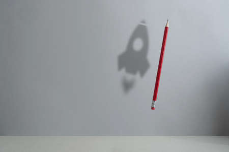 Pencil in air with shadow of a rocket, back to school, success concept