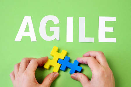 software agile word and puzzles, agile software development methodologies concept, closeup