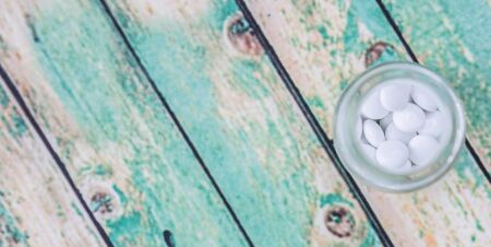 white pills on a blue background for health