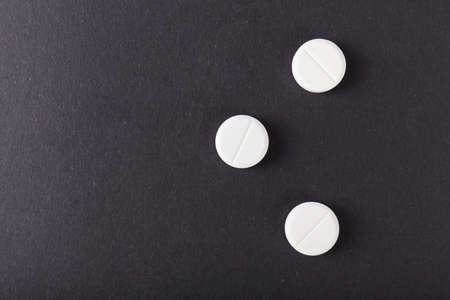 Pills close up on black background. Concept of medical