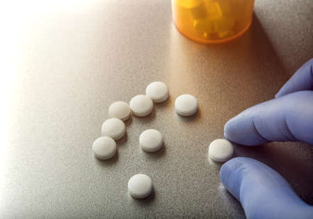 Nurse takes several pills white in laboratory, conceptual image