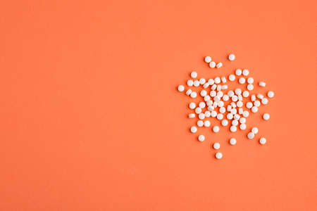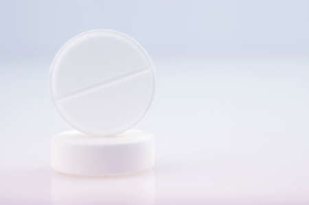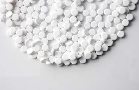 Close-up. Pharmacy theme, white medicine tablets antibiotic pills.