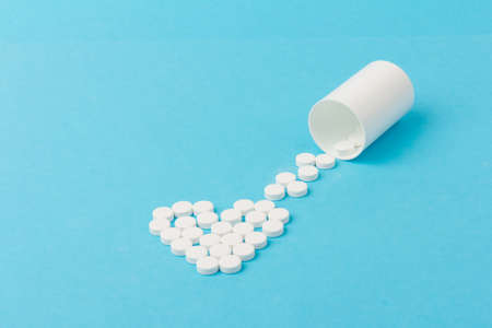 White medical pills on a blue background