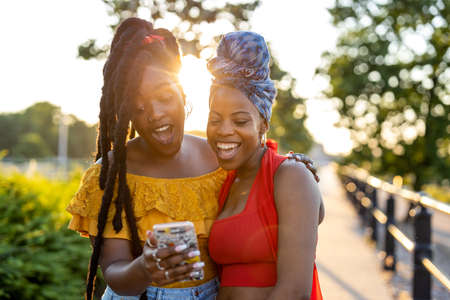 Happy young multi ethnic women having fun hanging out in the city - Diversity and friendship concept