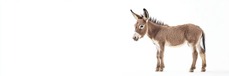 Cute donkey standing and looking forward, isolated on a white background, perfect for animal-themed visuals.