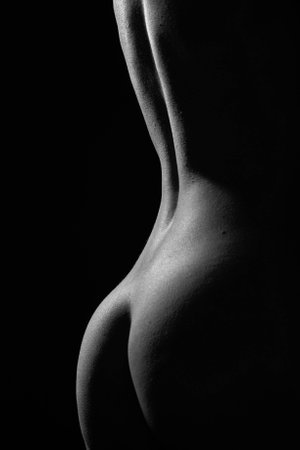 Black and white photography of beautiful glamor girl hands holding her own sexy buttocks