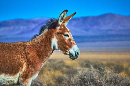 Wild Burro in Nevada Desert with Mountain Landscape and Natural Vegetation