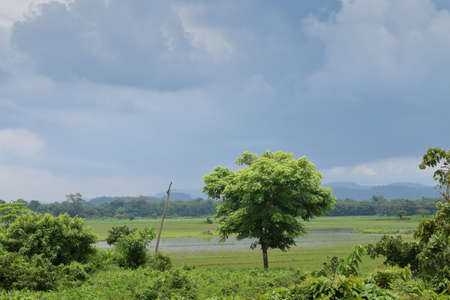 Inside view of Kaziranga National Park of northeast Indian state of Assam. Watchtower of Kaziranga National Park.