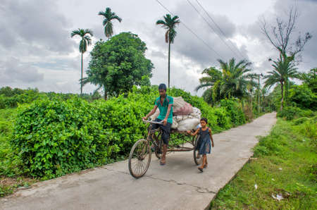 Scene back home on the way to the village. A brother and his sister are buying household items from the village market and forcing them to come home in a van rickshaw.