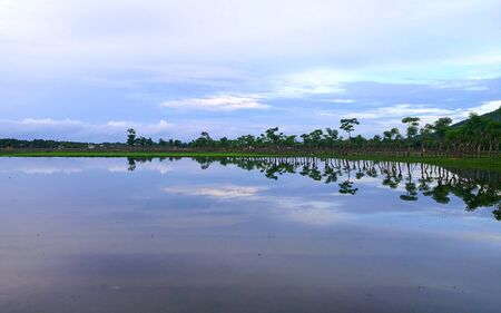 Picture of a muddy paddy field on a winter morning in the eastern side of India.