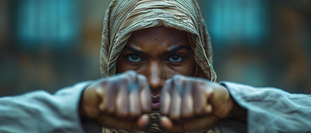 Strength and passion: A Muslim man excelling in his favorite sport or physical activity. Concept Muslim Representation, Physical Fitness, Sport Enthusiast, Cultural Identity, Athletic Achievement