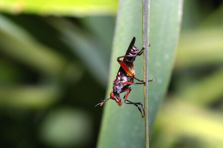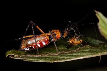 Assassin Bugs of the Species Zelus armillatus preying on a wasp