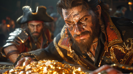 Pirate captain looking sternly, portraying a strong and determined leader from the golden age of piracy