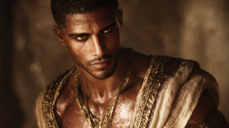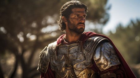A Greek warrior looks into the distance. concept of motivation. Generative AI