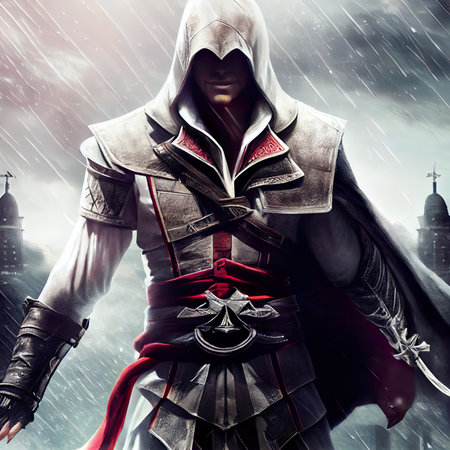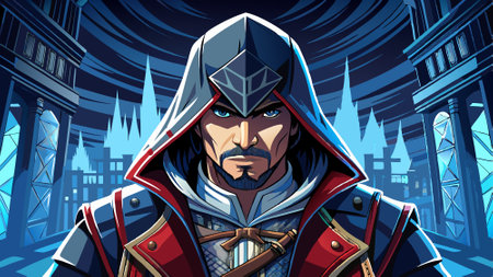 A mysterious unidentified man. The assassin creed.. AI generated. Vector icon