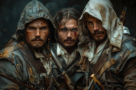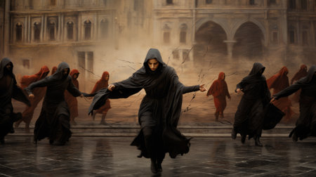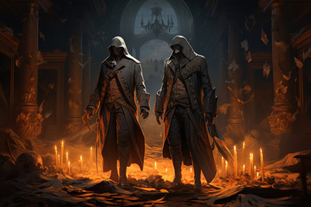Mysterious hooded figures in the dark