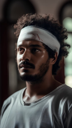 Portrait of a young african american man with bandage on his face.