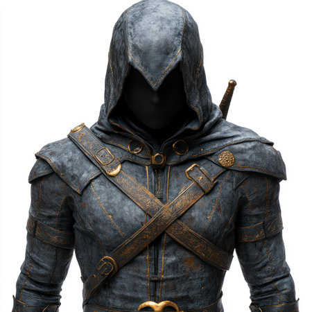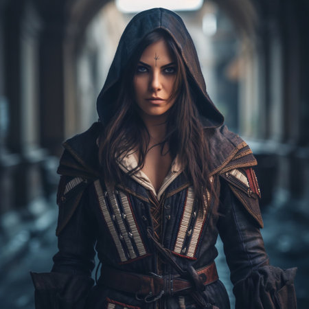 A cloaked figure with an enigmatic presence stands poised, embodying intrigue and mystery.