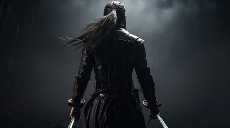 Warrior with a sword in his hands. Digital color painting.