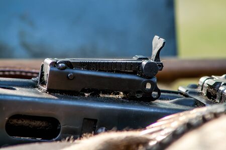 military weapon machine gun with ammunition closeup