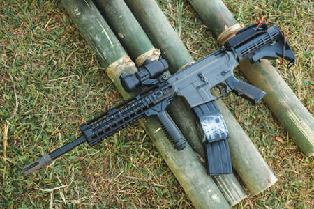 A assault rifle with a scope used by the military