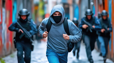 photo of angry boy teenager under control with police, generative AI