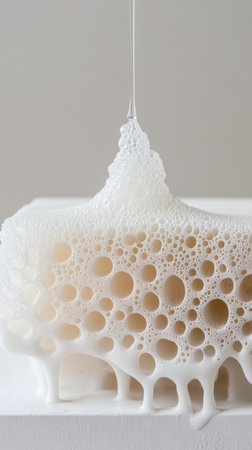 Explore a captivating close-up of natural foam texture featuring a unique arrangement of bubbles. The soft colors and intricate patterns offer an artistic touch, ideal for design projects.