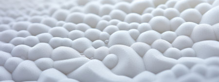 A close-up view of an abstract white textured surface resembling a collection of foam bubbles or a porous
