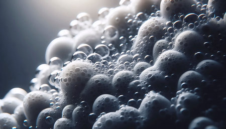 Liquid forming intricate bubble structures, highlighting nanotechnology concepts..