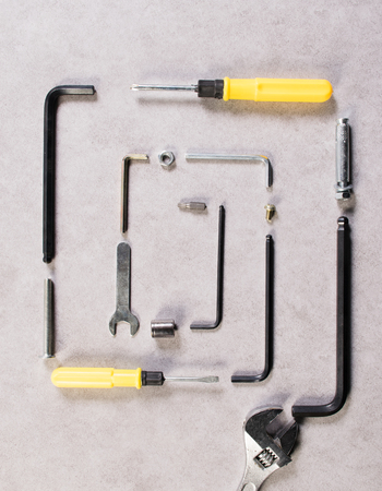 Tools for repairing top view on white background for maintenance and repairing concept.
