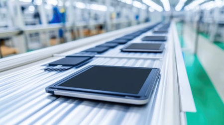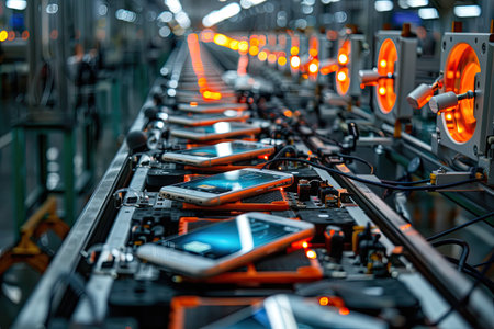 A large production workshop for the assembly of smartphones. Modern technologies for assembling mobile devices.