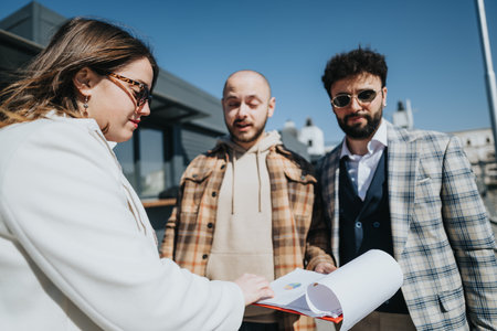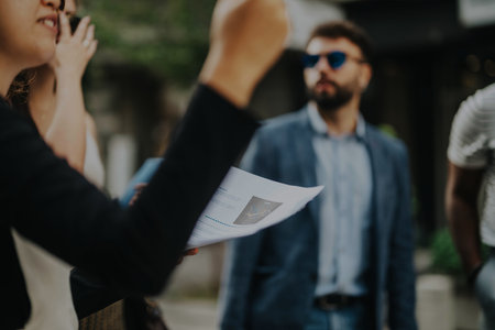engineers team are discussing while inspecting at construction site, multiracial business engineering man and woman are working outdoors in the urban