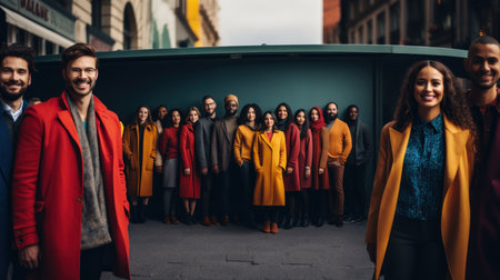 A vibrant tableau unfolds as people from diverse nationalities gather, representing a harmonious blend of cultures, backgrounds, and ethnicities, celebrating the beauty of multiculturalism and unity